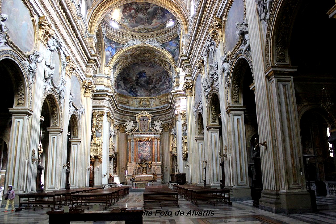The nave has five bays, and the arcades have massive pillars. Since the church was built in one campaign, the side chapels are all of identical architectural design, being on a square plan with chamfered far corners. Each is entered through a doorway in a screen wall, and narrow passages connect adjacent chapels