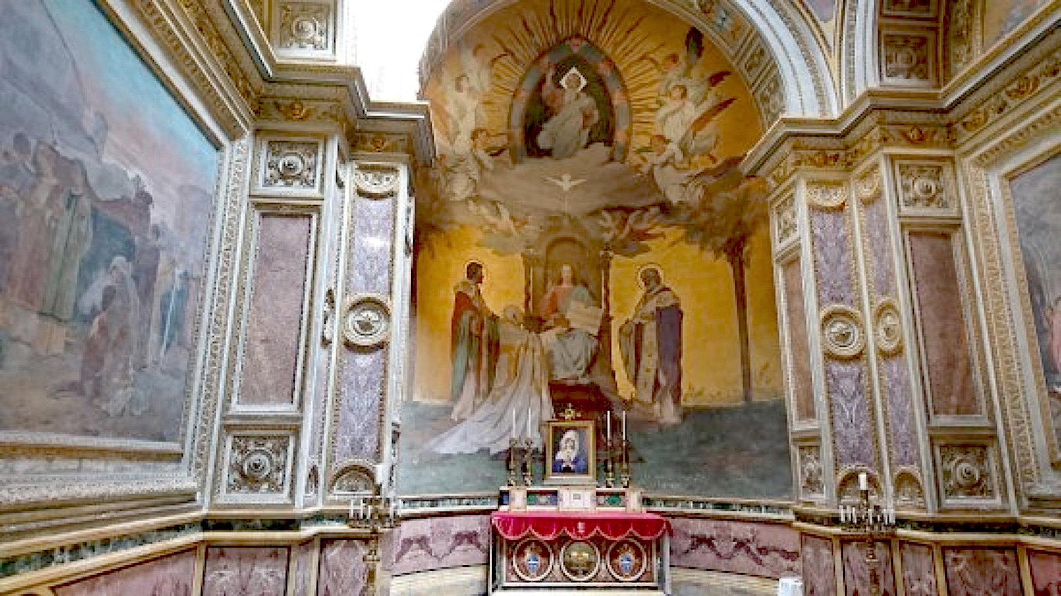 , as well as the wall frescoes depicting scenes from their lives, are by a painter called