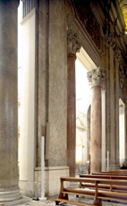Pope Benedict XIV had it rebuilt in the Baroque style between 1741 and 1744. The architects were Domenico Gregorini and Pietro Passalacqua. The roads that