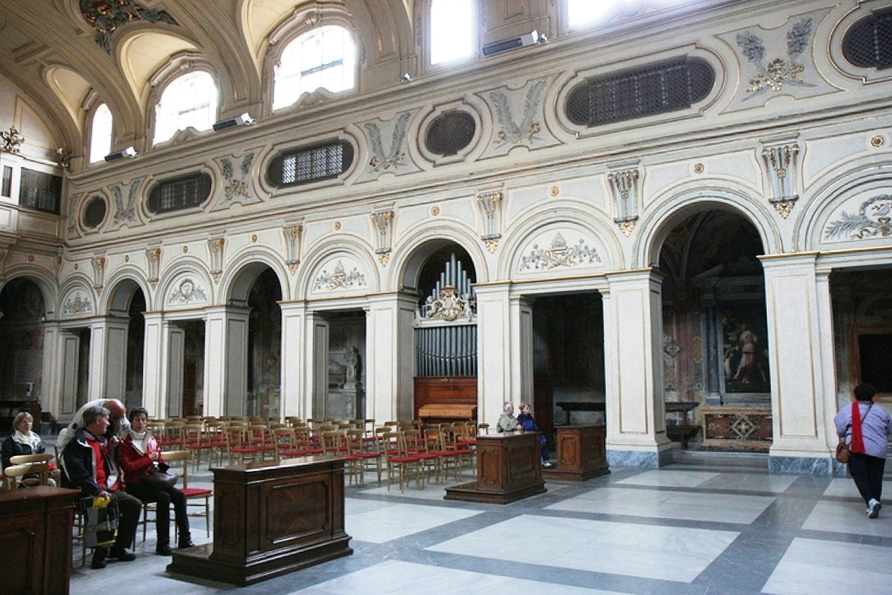 The nave has eleven bays, originally separated by twelve granite Corinthian columns in the arcades on each side. Since the restoration of 1823, these columns have been encased in squat Doric pillars.