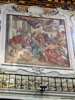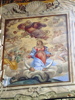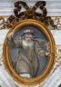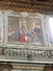 Above each column, placed over the entablature, is an elliptical tondo containing a fresco of a Franciscan saint. These total twenty-two, and were painted by fra Umile. Unfortunately, he did not label them. The sleepy nun about to drop out of her tondo, with her little dog trying to get onto her lap, is St Margaret of Cortona.