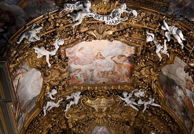 The prosperity of the archconfraternity allowed it to commission Baroque decorative elements in fresco and stucco work which make up the luscious sumptuousness of the interior today.