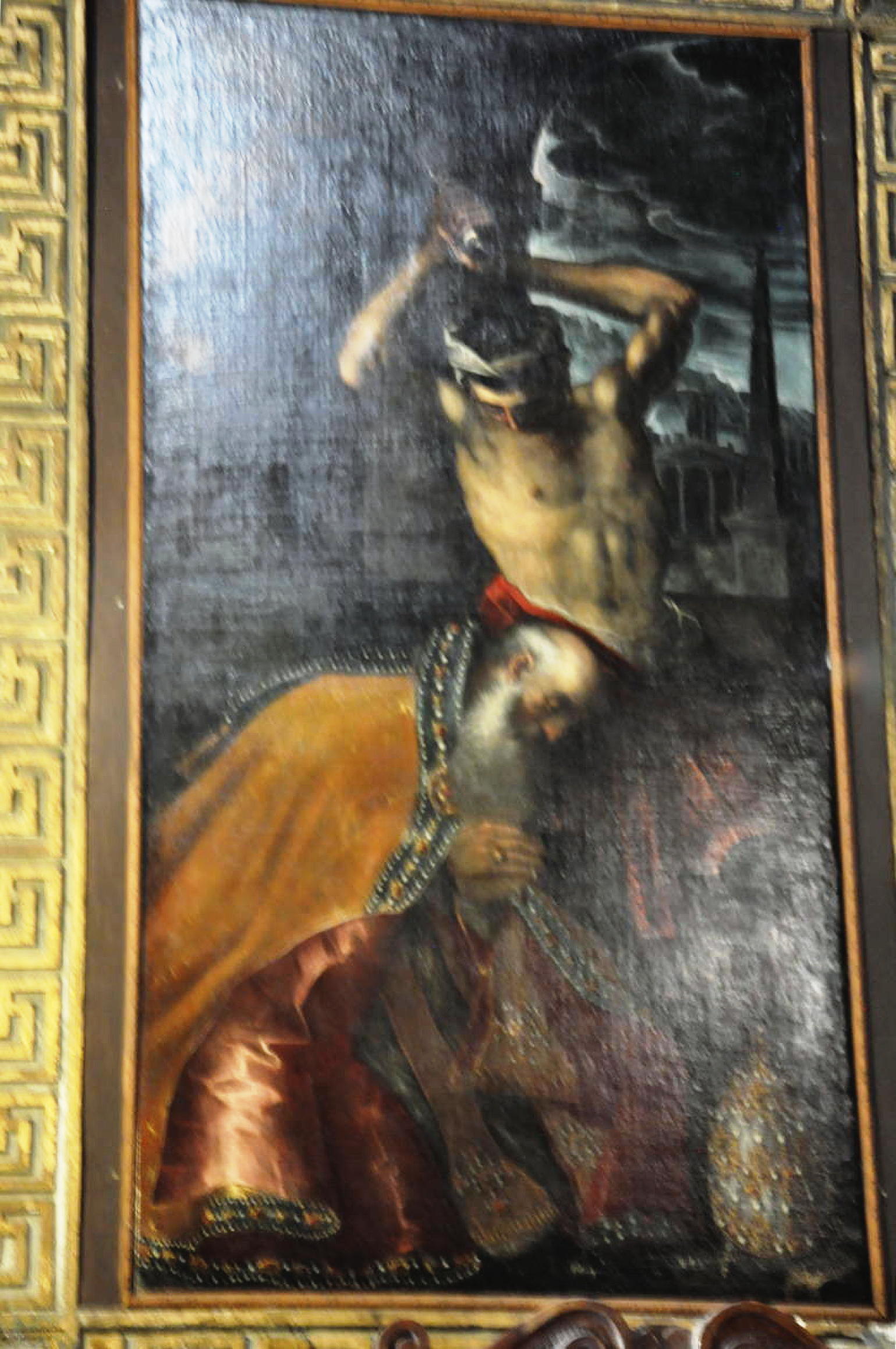 The altarpiece shows his martyrdom, and is by the Capuchin friar called