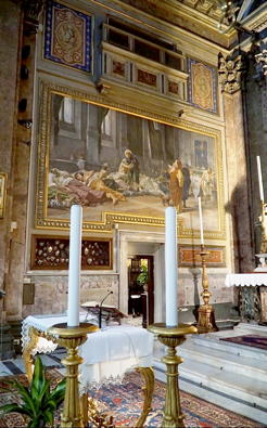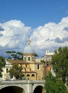 San Rocco is a 17th century church built for a hospital, located in the rione Campo Marzio, between Ponte Cavour and the Mausoleum of Augustus. The dedication is to St Roch (13th century), to whom particular skills were attributed in combating diseases.